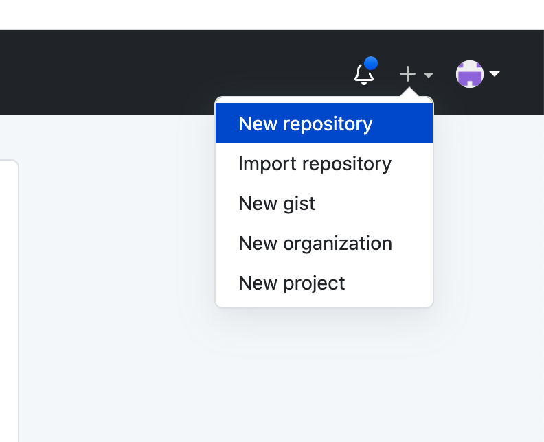 そして、下記画像の「New repository」を選択します。