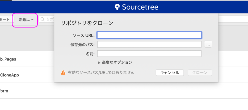 GitをGUIで操作するのに有名なSourceTreeであれば簡単にクローン出来ますので、慣れていない方にお勧めです。