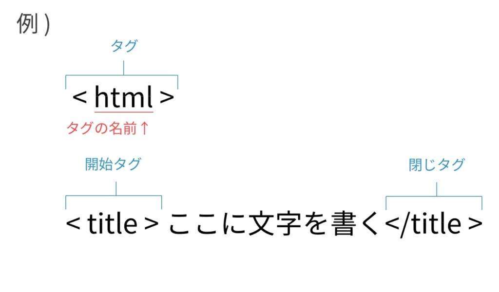 また、タグには、「開始タグ」と「閉じタグ」があるものがあります。