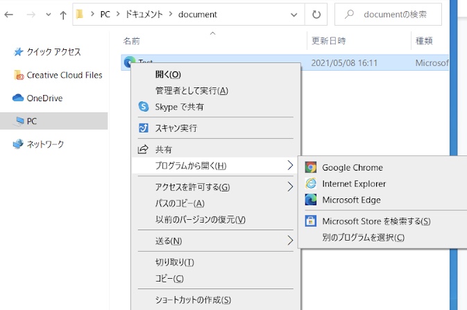 ファイルをダブルクリックする場合は、WindowsだとMicrosoft Edgeのブラウザでファイルが自動的に開かれます。