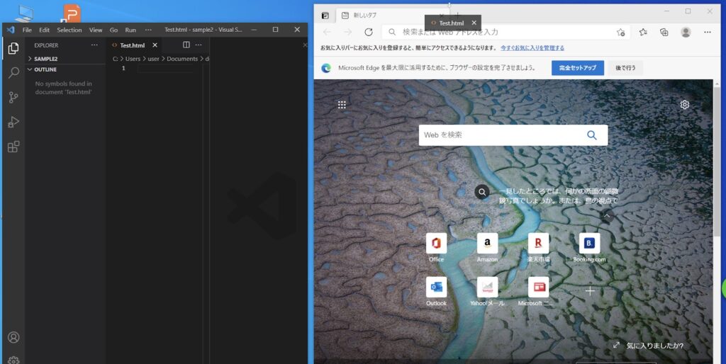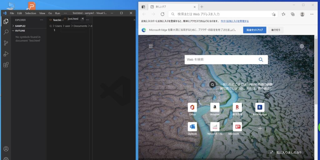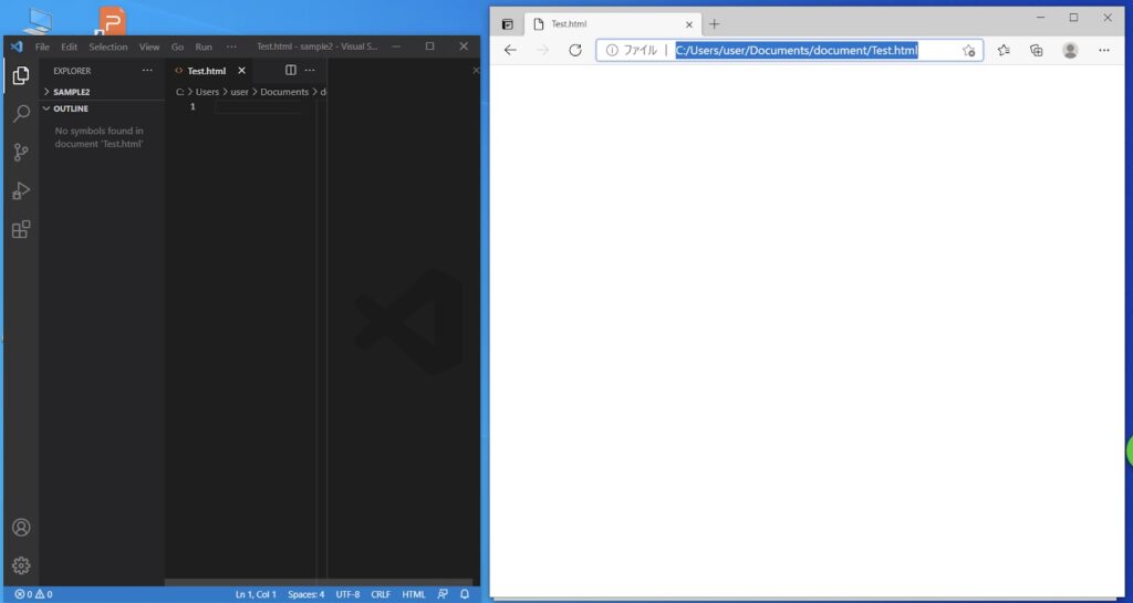 まずは、テキストエディタとブラウザを両方立ち上げましょう。