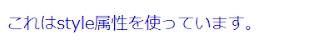 <p style="color: blue">これはstyle属性を使っています。</p>出力すると以下のようになります。