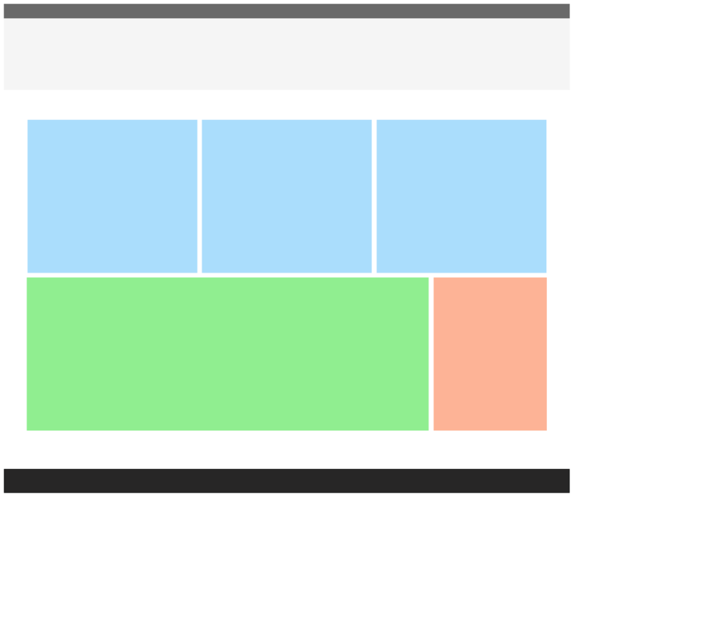 以上説明してきた4つの要素を、タテに一列に並べた1カラムレイアウトがよくあるレイアウトであるといえます。