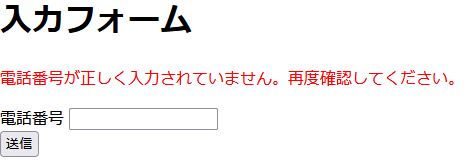 “電話番号の欄が正しく入力されていません。”などと表示されて再入力を促されるといったものです。