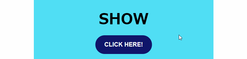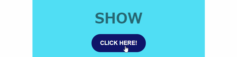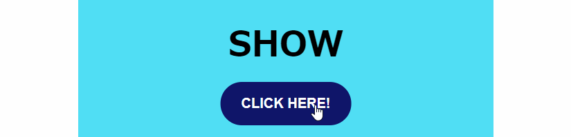 そして、CLICK HERE!と書かれたボタンを押すたびに、h1要素にshowというクラスを付けたり外したりしています。