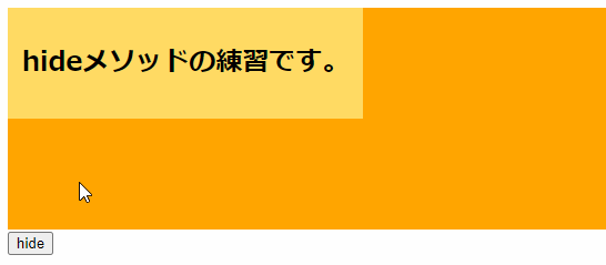 <h2>hideメソッドの練習です。</h2>