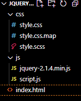 jquery-hideフォルダの中に、index.htmlファイル、cssフォルダ、jsフォルダがそれぞれ格納されています。