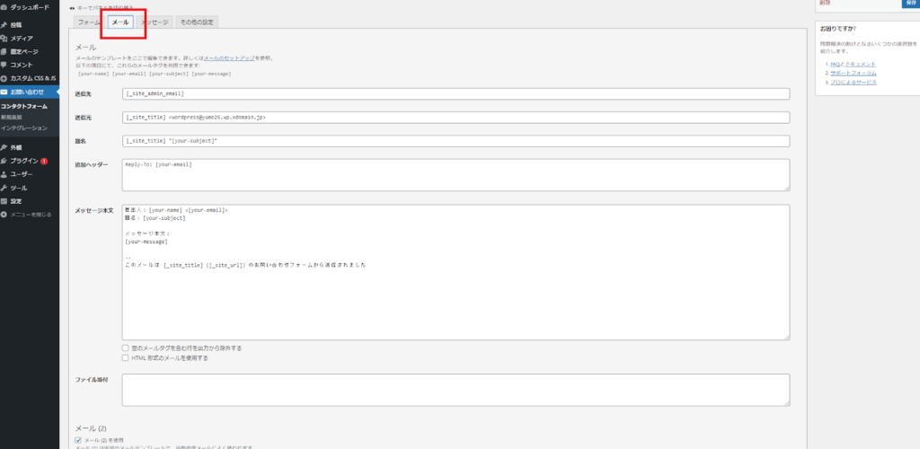 • 送信先:[_site_admin_email]にしておけば、WordPressを登録した時のアドレスに送信されます。