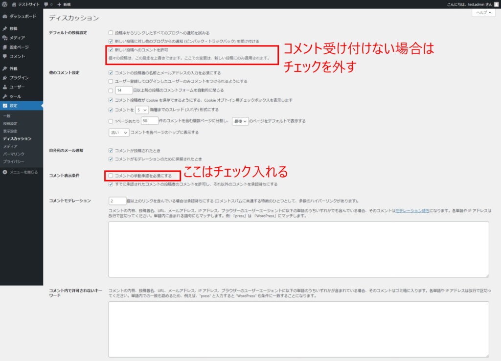 特に、自分のあずかり知らないところで勝手にコメント欄が炎上してしまうリスクを避けるためにも、「コメントの手動承認を必須にする」のチェックは入れておきましょう。