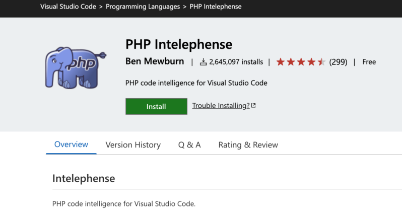 まず、PHP Intelephenseをインストールしていない方はそちらから先に進めていきましょう。