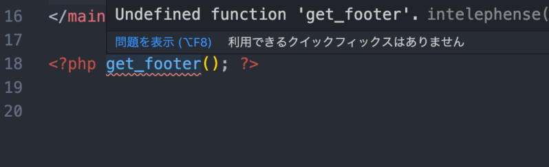 Undefined function 'get_footer'.intelephense(1010)この様なWordPress関数エラーを解消するために、以下の手順を行う必要があります。